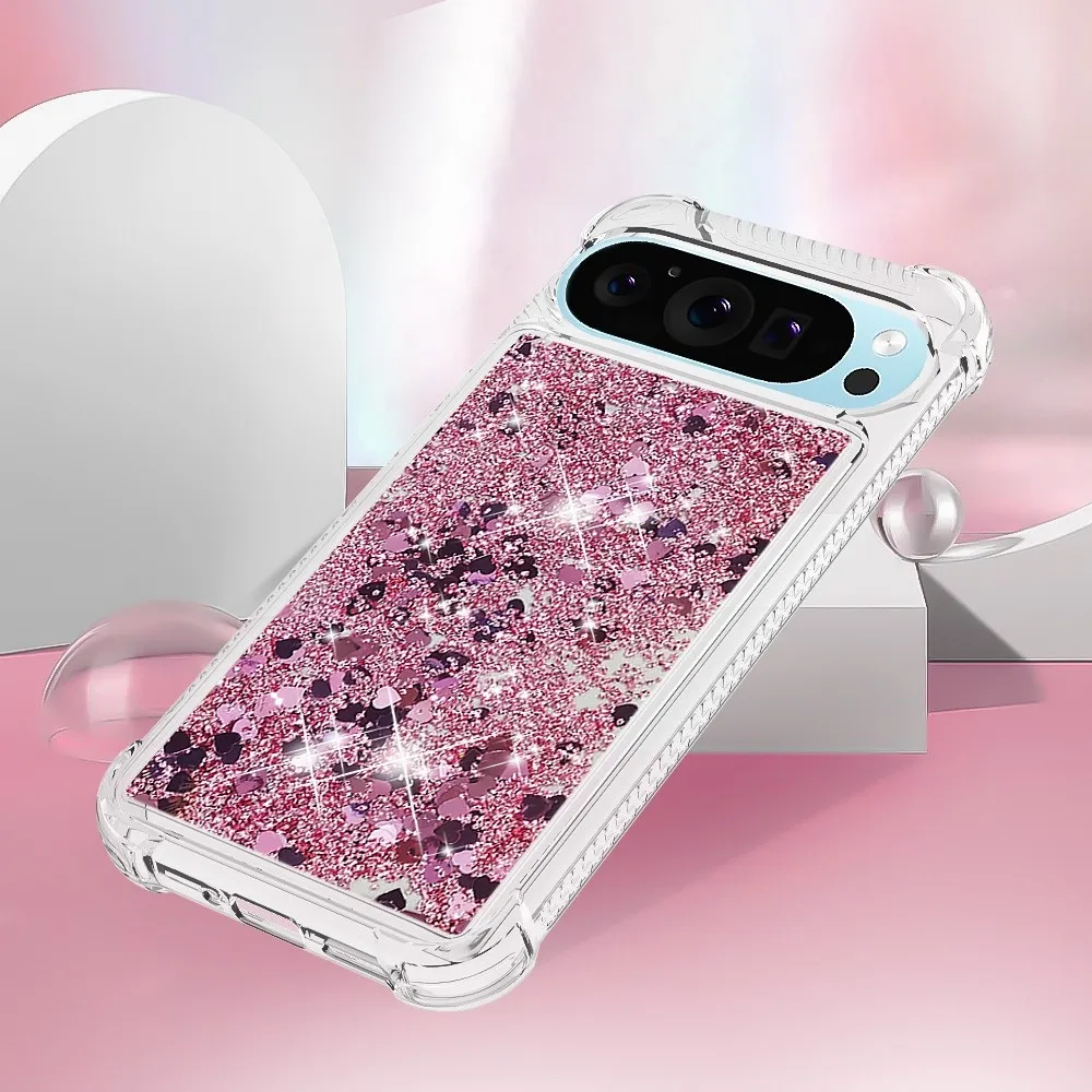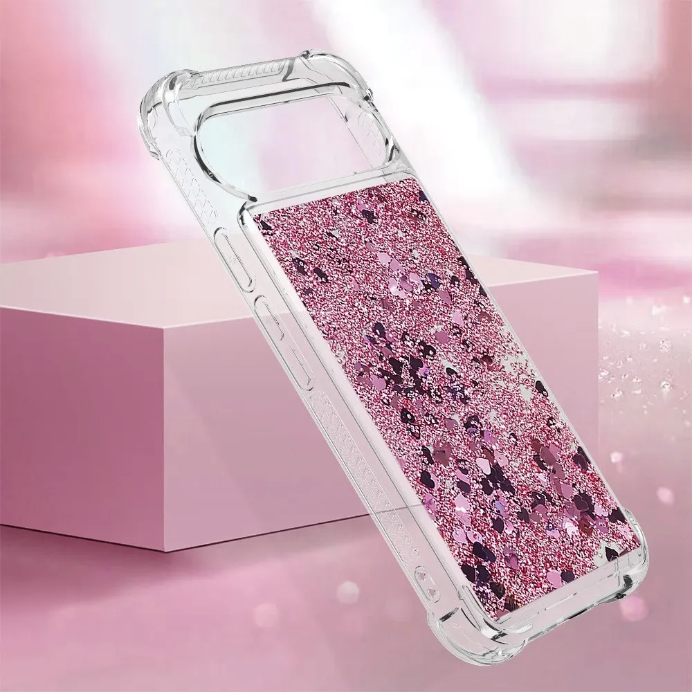 Csillogó homokóra zselés tok Google Pixel 10 Pro XL-hez - rózsaarany/szív