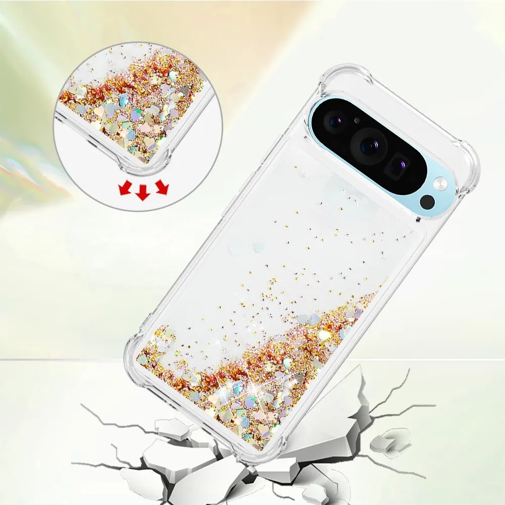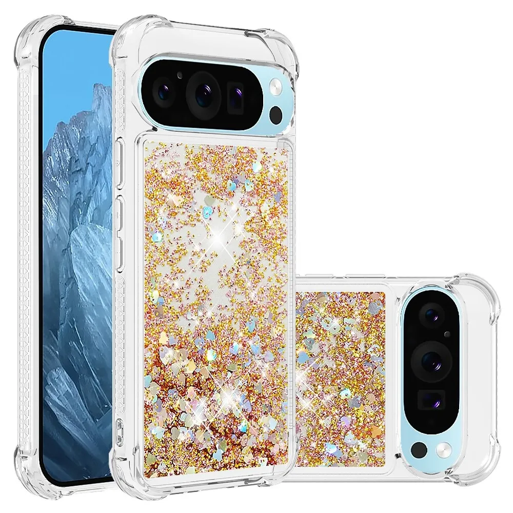 Arany, szívekkel homokóra zselés borítás Glitter a Google Pixel 10 Pro XL-hez