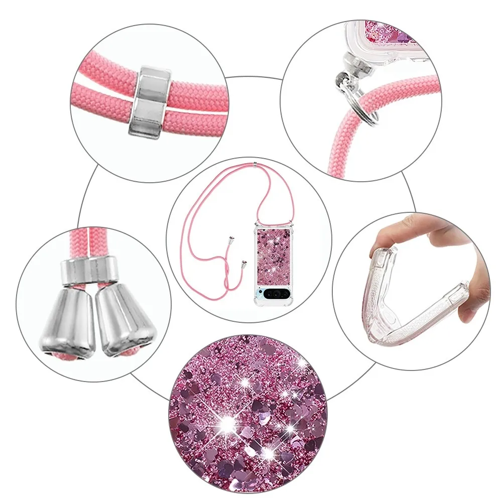 ✅【Fokozott ütésvédelem】A Google Pixel 10 Pro/Pixel 10 Glitters Lanyard tok - Rózsaszínarany szívekkel - puha TPU peremét körülvéve kiváló ütésvédelmet és leesésgátlást biztosít, biztosítva, hogy telefonja biztonságban legyen a véletlen ütődésektől. ✅【Homokos, csillogó dizájn】A folyadékban csillogó flitterek szabadon mozognak, és lenyűgöző hatást keltenek, mintha a vízben úszó csillagok lennének, így a telefontok egyszerre szórakoztató és divatos.