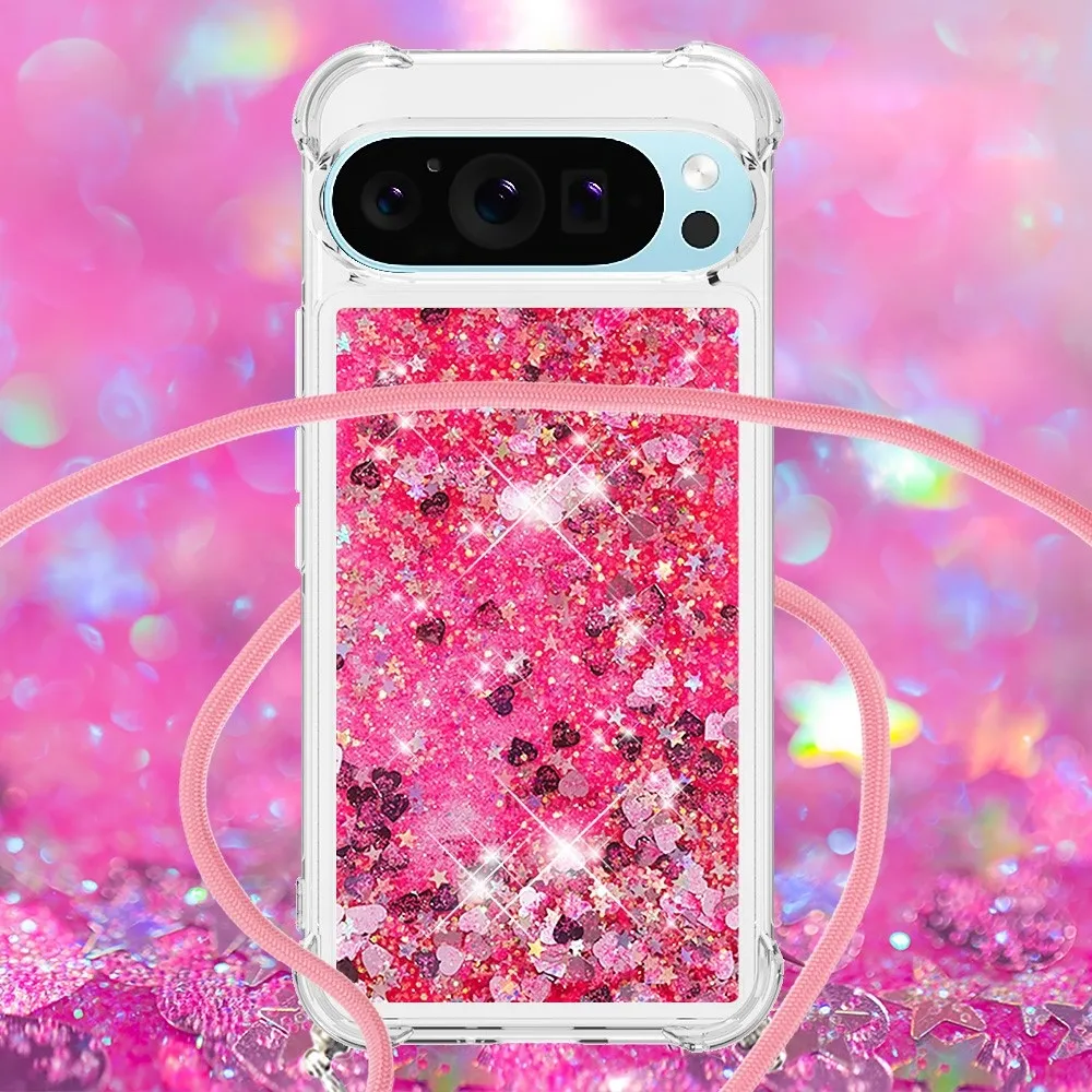 Csillogó homokóra zselés tok húzózsinórral Google Pixel 10 Pro/Pixel 10 - rózsaszín/szív