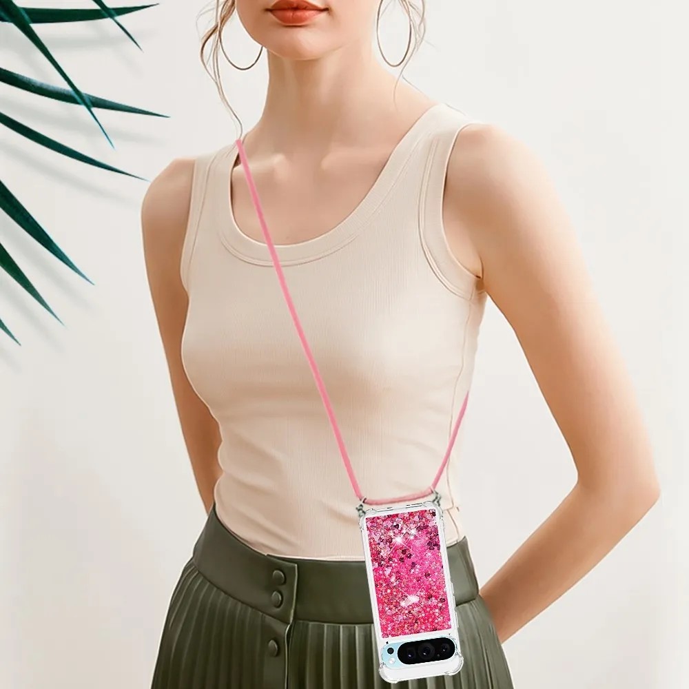 Rózsaszín szívekkel Csillogó homokóra zsinórral a Google Pixel 10 Pro/Pixel 10 számára