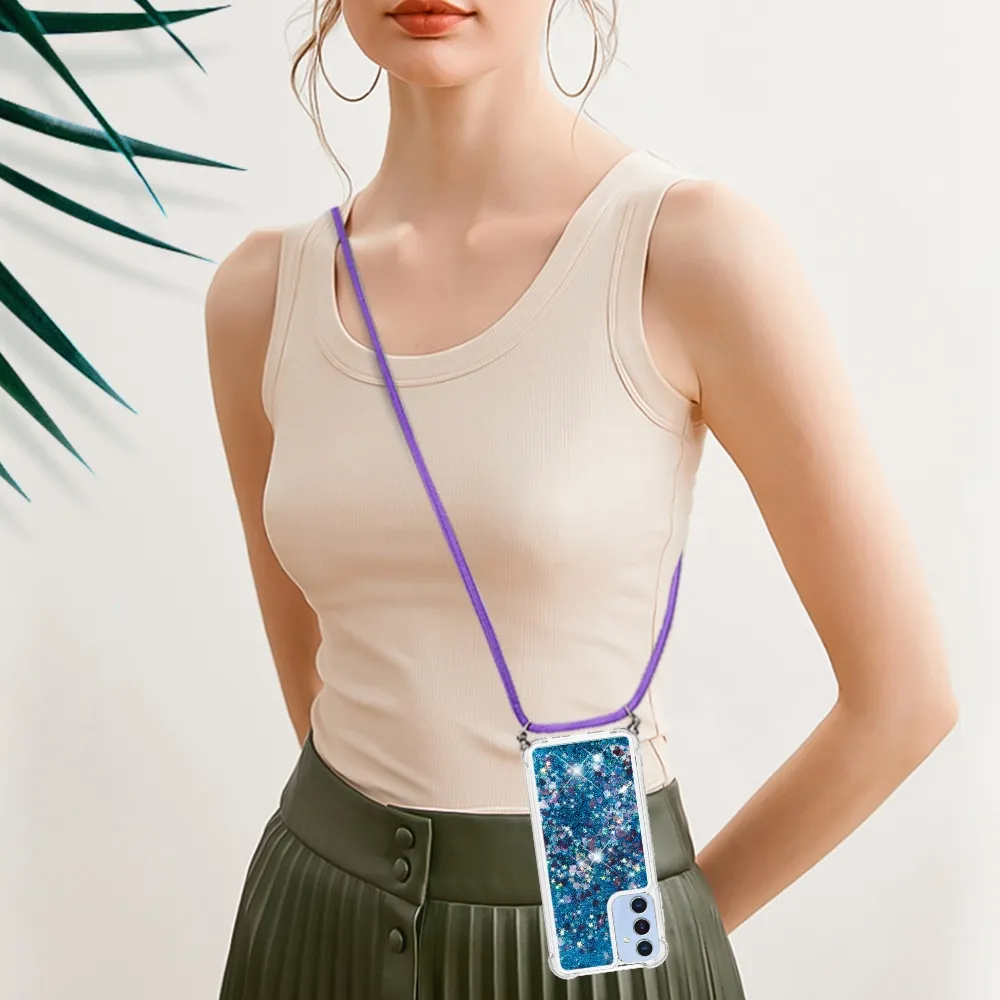 ✅【Fokozott ütésvédelem】A Samsung Galaxy A17 4G/5G Glitters Lanyard tok - Kék, szívecskékkel - puha TPU pereme kiváló ütésvédelmet és leejtésmegelőzést biztosít, biztosítva, hogy telefonja biztonságban legyen a véletlen ütésektől és a mindennapi élettől. ✅【Homokos, csillogó dizájn】A folyadékban lévő csillogó flitterek szabadon mozognak, és lenyűgöző hatást keltenek, mint a vízben úszó csillagok, így a telefontok egyszerre szórakoztató és divatos.