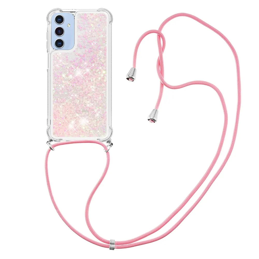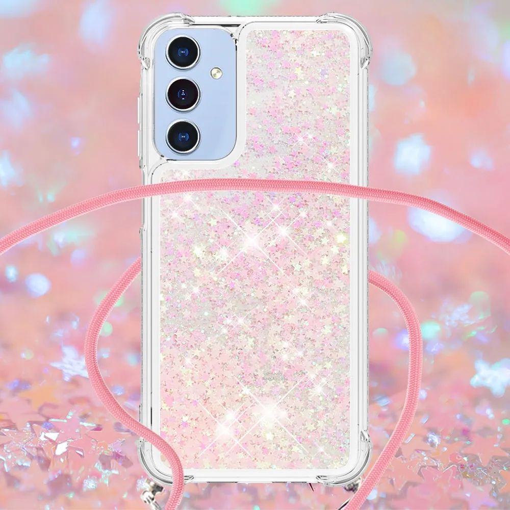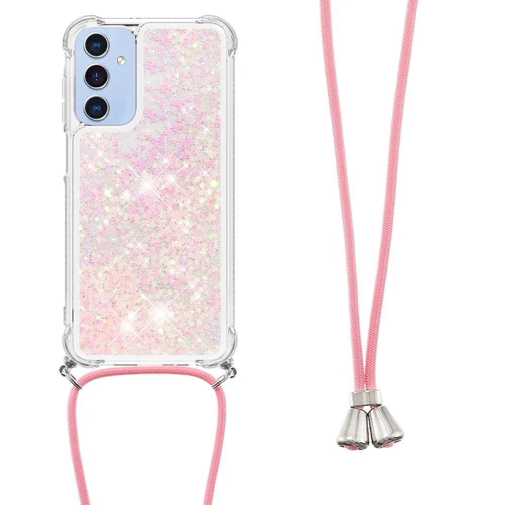 ✅【Fokozott ütésvédelem】A Samsung Galaxy A17 4G/5G Csillámos Zsinóros Tokját - Rózsaszín csillagokkal körülvevő puha TPU perem kiváló ütésvédelmet és leejtésmegelőzést nyújt, biztosítva, hogy telefonja biztonságban legyen a véletlen ütődésektől és a mindennapi sérülésektől. ✅【Homokos csillogó dizájn】A folyadékban lévő csillogó flitterek szabadon mozognak, és lenyűgöző hatást keltenek, mintha a vízben úszó csillagok lennének, így a telefontok egyszerre szórakoztató és divatos.
