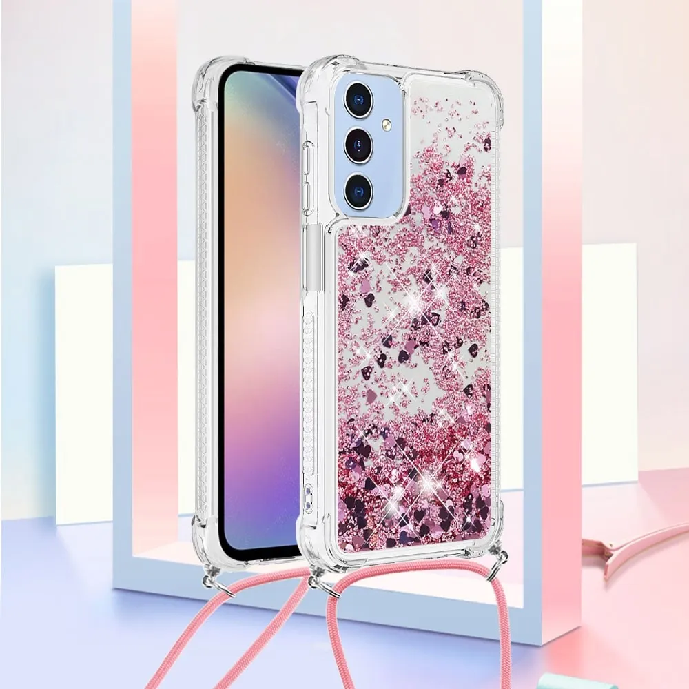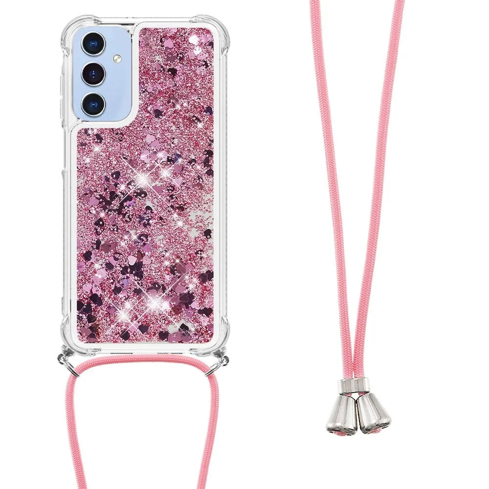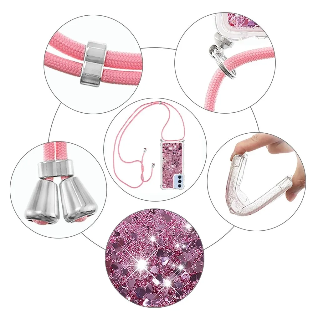 ✅【Fokozott ütésvédelem】A Samsung Galaxy A26 5G Glitters Lanyard tok - Rózsaszínarany szívekkel - puha TPU peremét körülvéve kiváló ütésvédelmet és leesésgátlást biztosít, biztosítva, hogy telefonja biztonságban legyen a véletlen ütődésektől. ✅【Homokos, csillogó dizájn】A folyadékban csillogó flitterek szabadon mozognak, és lenyűgöző hatást keltenek, mintha a vízben úszó csillagok lennének, így a telefontok egyszerre szórakoztató és divatos.
