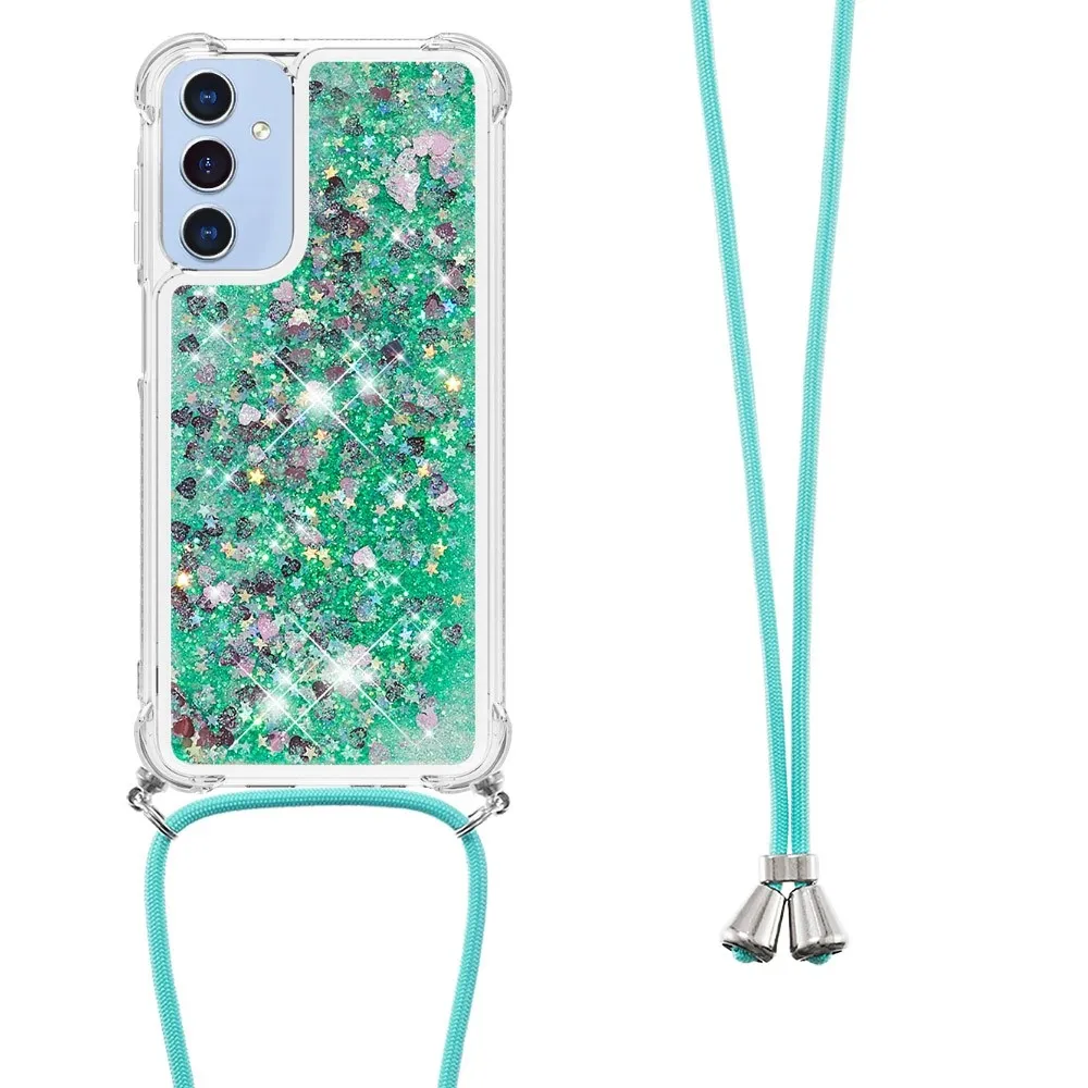 ✅【Fokozott ütésvédelem】A Samsung Galaxy A26 5G Glitters Lanyard tokját körülvevő puha TPU perem kiváló ütésvédelmet és leejtésmegelőzést biztosít, biztosítva, hogy telefonja biztonságban legyen a véletlen ütődésektől. ✅【Homokos, csillogó dizájn】A folyadékban lévő csillogó flitterek szabadon mozognak, és lenyűgöző hatást keltenek, mint a vízben úszó csillagok, így a telefontok egyszerre szórakoztató és divatos.