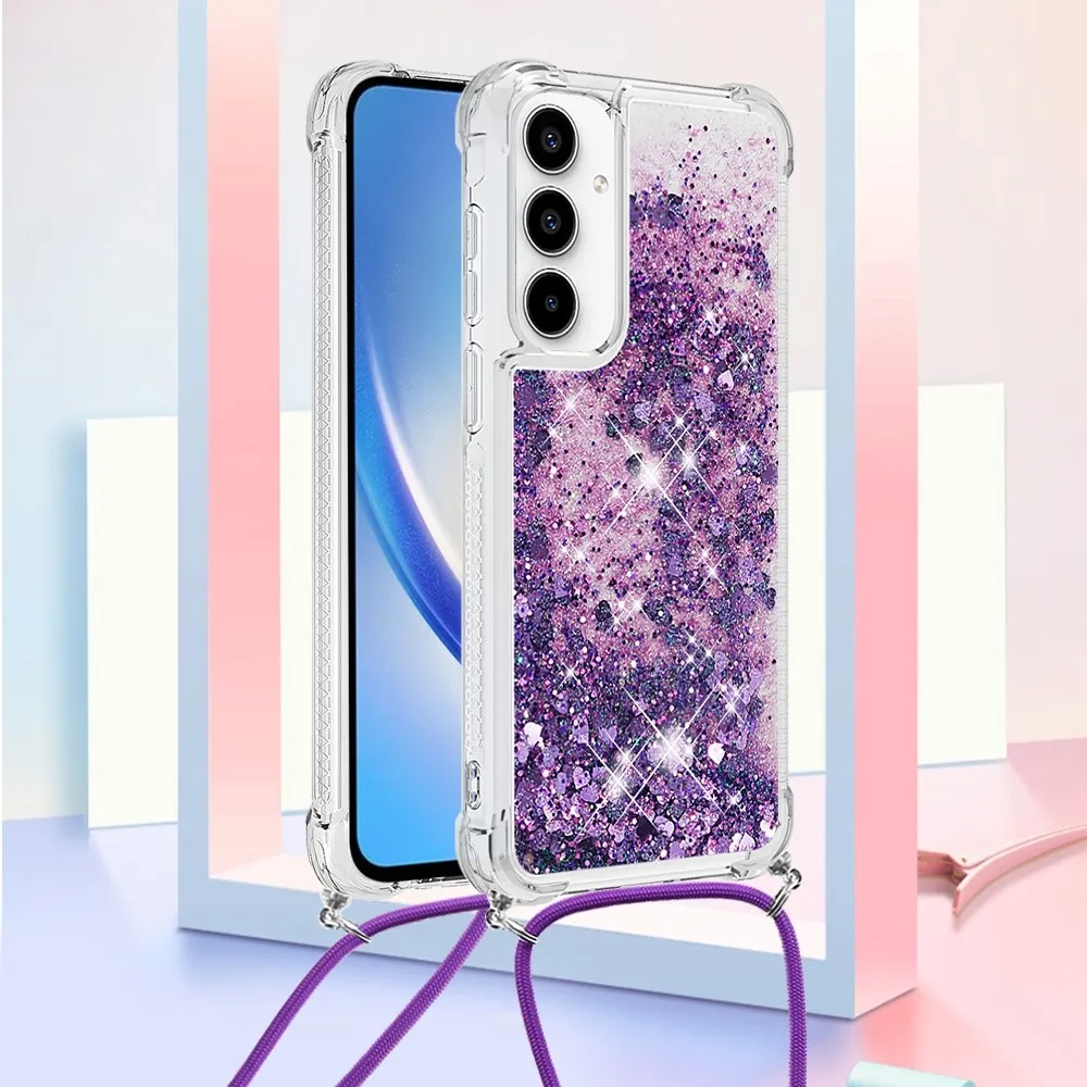 ✅【Fokozott ütésvédelem】A Samsung Galaxy A36 5G csillogós nyakpántos tokját - sötétlila szívekkel - körülvevő puha TPU perem kiváló ütésvédelmet és leejtésmegelőzést biztosít, biztosítva, hogy telefonja biztonságban legyen a mindennapokban. ✅【Homokos, csillogó dizájn】A folyadékban lévő csillogó flitterek szabadon mozognak, és lenyűgöző hatást keltenek, mint a vízben úszó csillagok, így a telefontok egyszerre szórakoztató és divatos.
