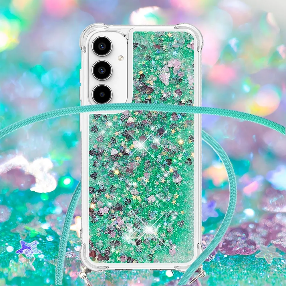 ✅【Fokozott ütésvédelem】A Samsung Galaxy A36 5G Glitters Lanyard tokját körülvevő puha TPU perem kiváló ütésvédelmet és leejtésmegelőzést biztosít, biztosítva, hogy telefonja biztonságban legyen a véletlen ütődésektől. ✅【Homokos, csillogó dizájn】A folyadékban lévő csillogó flitterek szabadon mozognak, és lenyűgöző hatást keltenek, mint a vízben úszó csillagok, így a telefontok egyszerre szórakoztató és divatos.