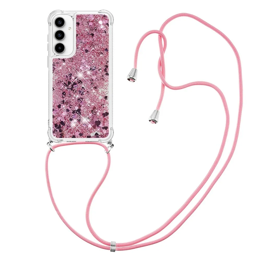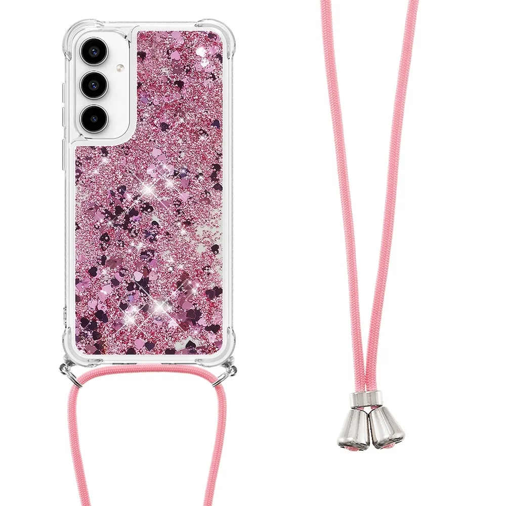 ✅【Fokozott ütésvédelem】A Samsung Galaxy A56 5G Glitters Lanyard tok - Rózsaszínarany szívekkel - puha TPU peremét körülvéve kiváló ütésvédelmet és leesésgátlást biztosít, biztosítva, hogy telefonja biztonságban legyen a véletlen ütődésektől. ✅【Homokos, csillogó dizájn】A folyadékban csillogó flitterek szabadon mozognak, és lenyűgöző hatást keltenek, mintha a vízben úszó csillagok lennének, így a telefontok egyszerre szórakoztató és divatos.