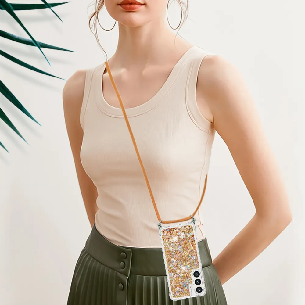 ✅【Fokozott ütésvédelem】A Samsung Galaxy S26/S26 Pro Glitters Lanyard tokját - Arany szívekkel körülvevő puha TPU perem kiváló ütésvédelmet és leejtésmegelőzést biztosít, biztosítva, hogy telefonja biztonságban legyen a véletlen ütődésektől. ✅【Homokos, csillogó dizájn】A folyadékban lévő csillogó flitterek szabadon mozognak, és lenyűgöző hatást keltenek, mint a vízben úszó csillagok, így a telefontok egyszerre szórakoztató és divatos.