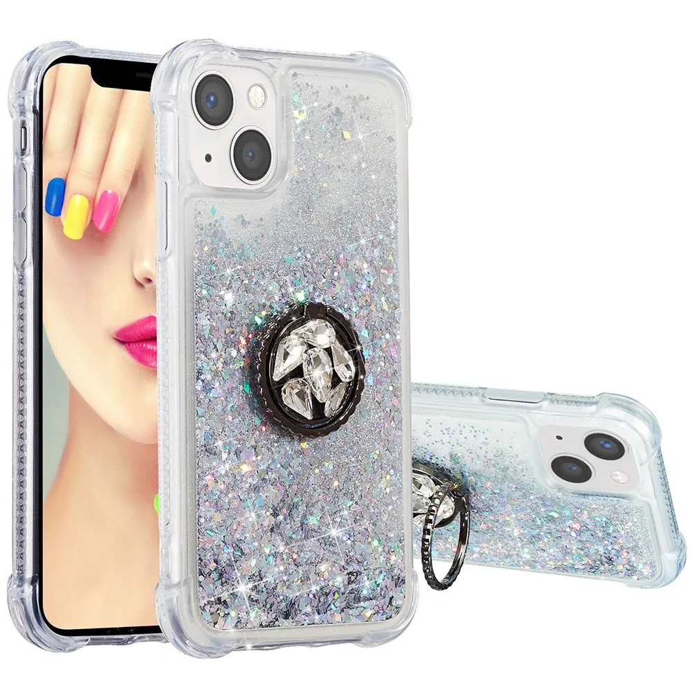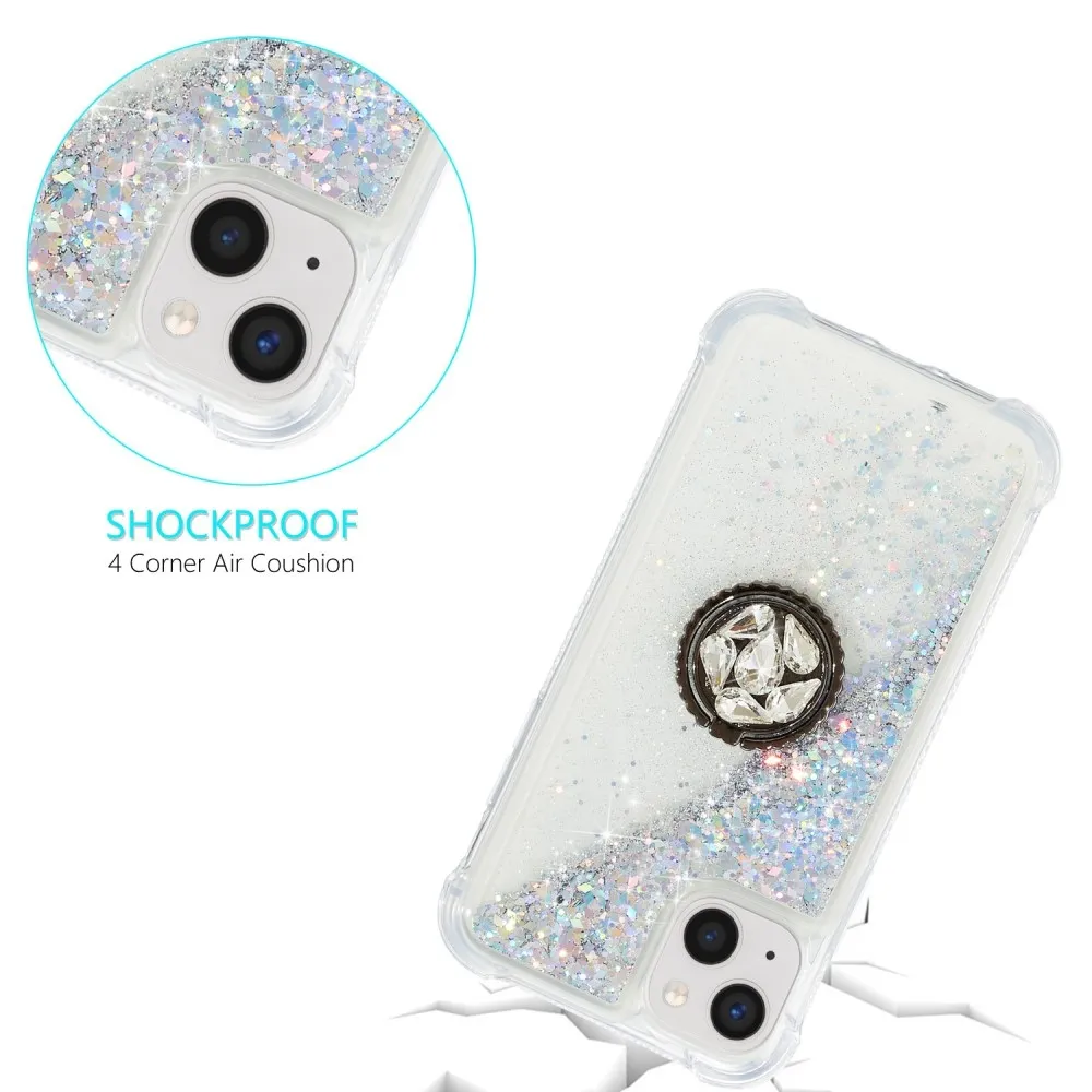 Ezüst csillogó homokóra zselés tok iPhone 15 készülékhez