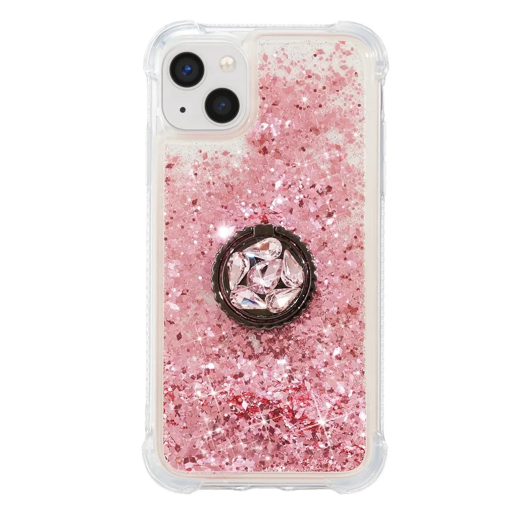 Csillogó homokóra zselés tok iPhone 15 Plus készülékhez - rózsaszín