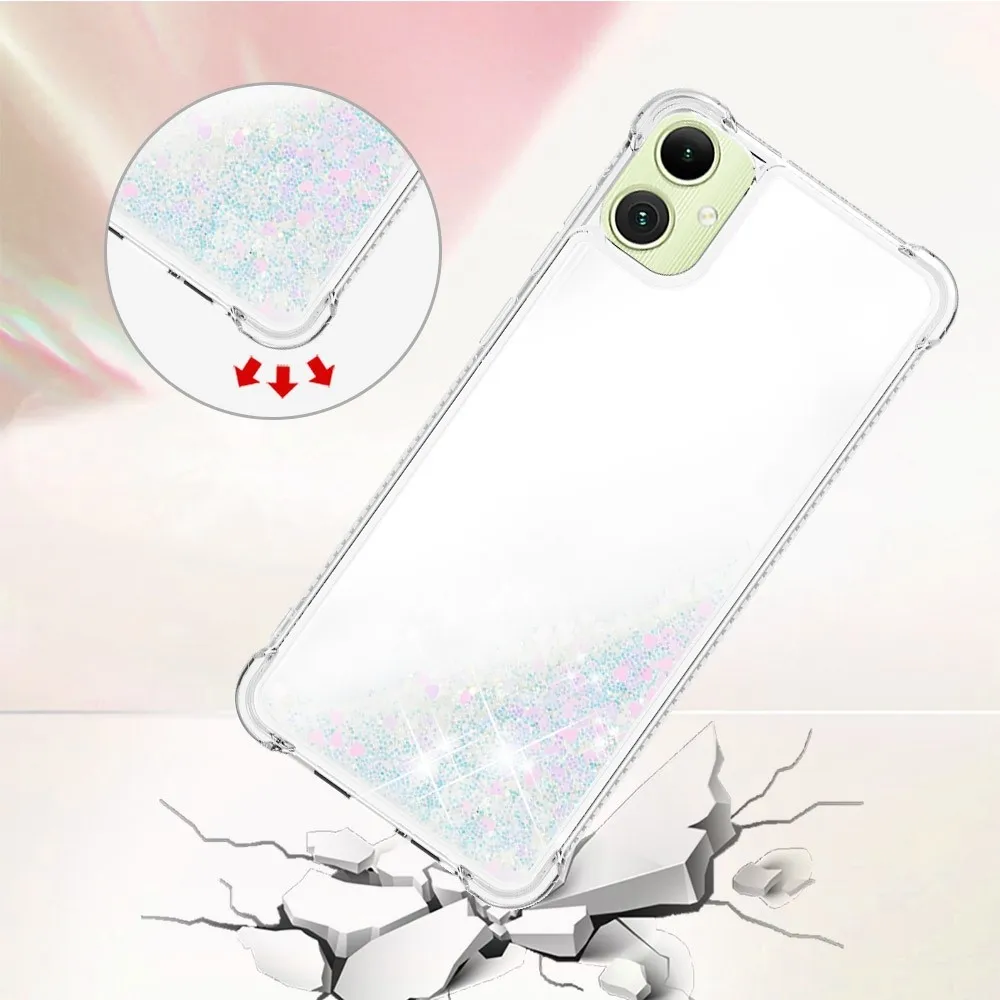Rózsaszín és ezüst szívecskékkel homokóra zselés borító Glitter Samsung Galaxy A06 4G-hez