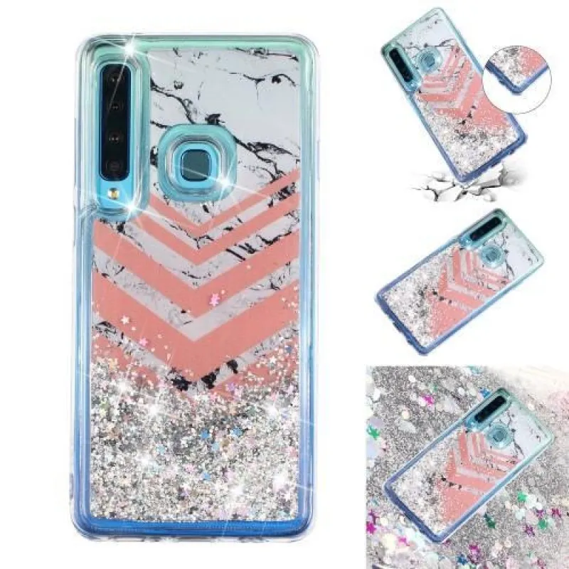 Modern borító kép motívummal márvány és ékzár csillogó homokóra zselés tok Samsung Galaxy A9-hez