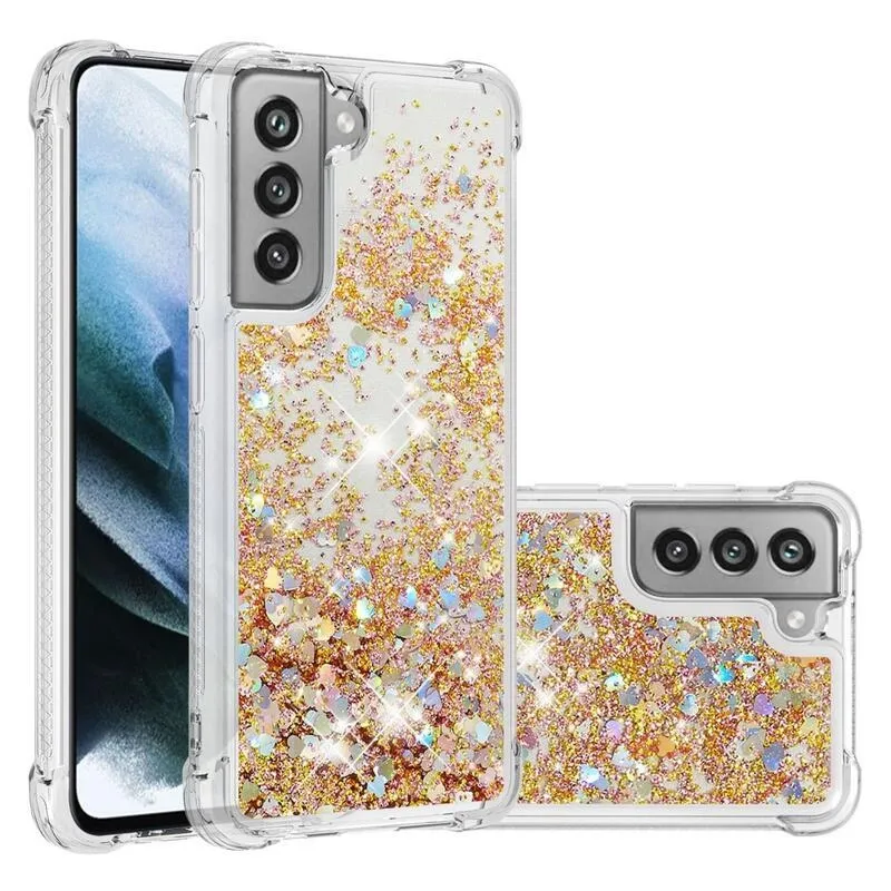 Csillogó homokóra zselés tok Samsung Galaxy S21 FE 5G - arany/szív