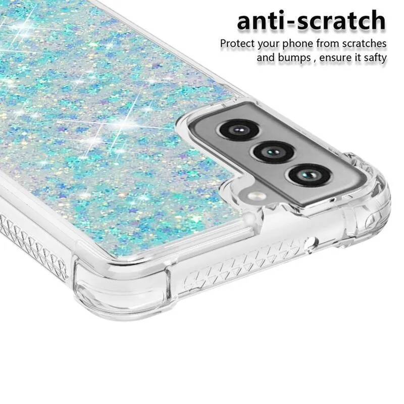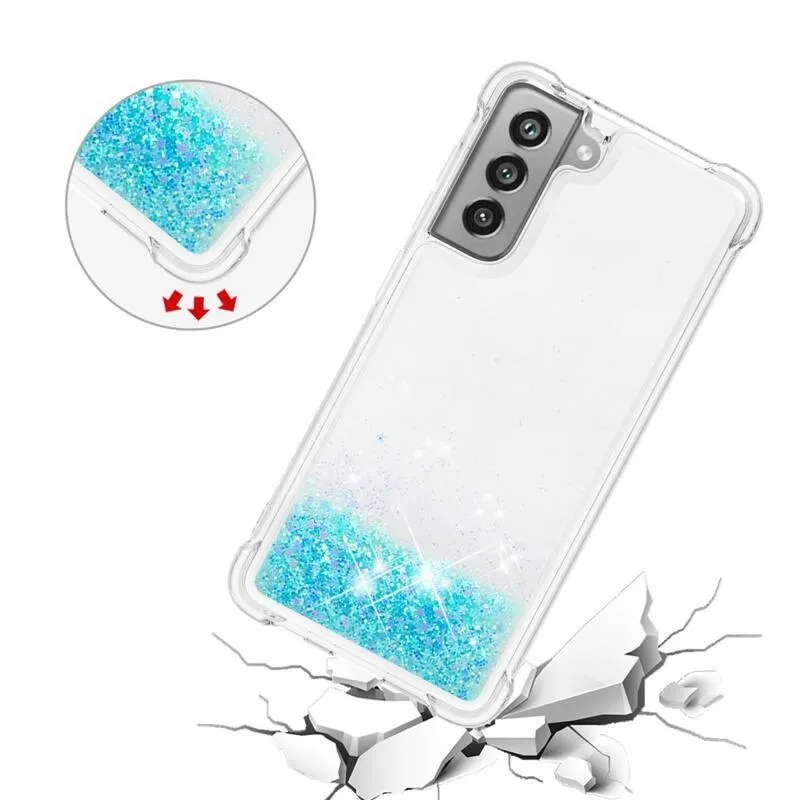 Csillogó homokóra zselés tok Samsung Galaxy S21 FE 5G - kék/csillagok