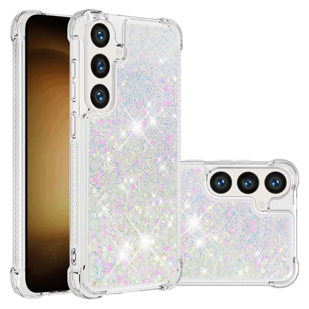 Rózsaszín és ezüst szívecskékkel homokóra zselés borító Glitter Samsung Galaxy S26/S26 Pro készülékhez