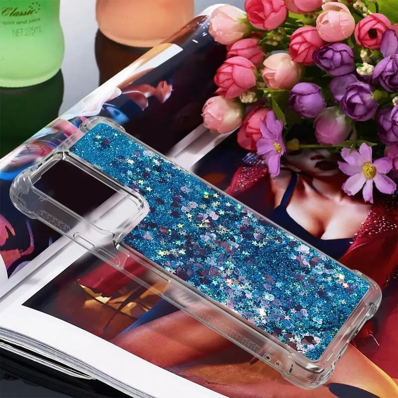 Csillogó homokóra zselés tok Xiaomi Redmi Note 10 Pro - kék/szív