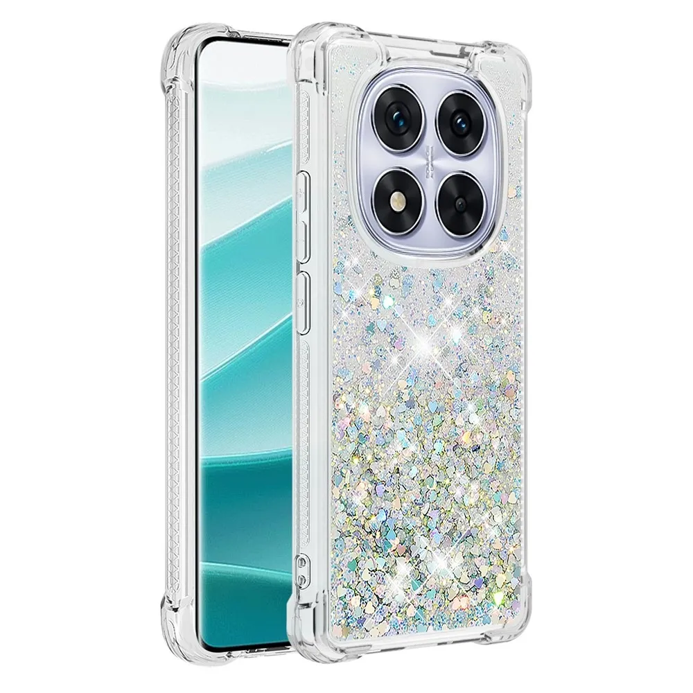 Csillogó ezüst szilikon tok szívekkel Xiaomi Redmi Note 14 Pro 5G/Poco X7 5G számára