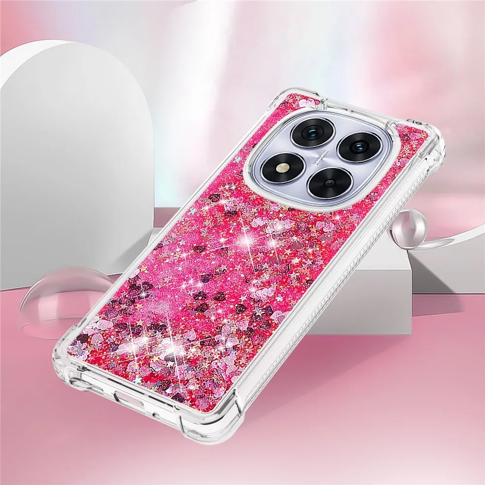 Rózsaszín csillogó szilikon tok szívekkel Xiaomi Redmi Note 14 Pro 5G/Poco X7 5G számára