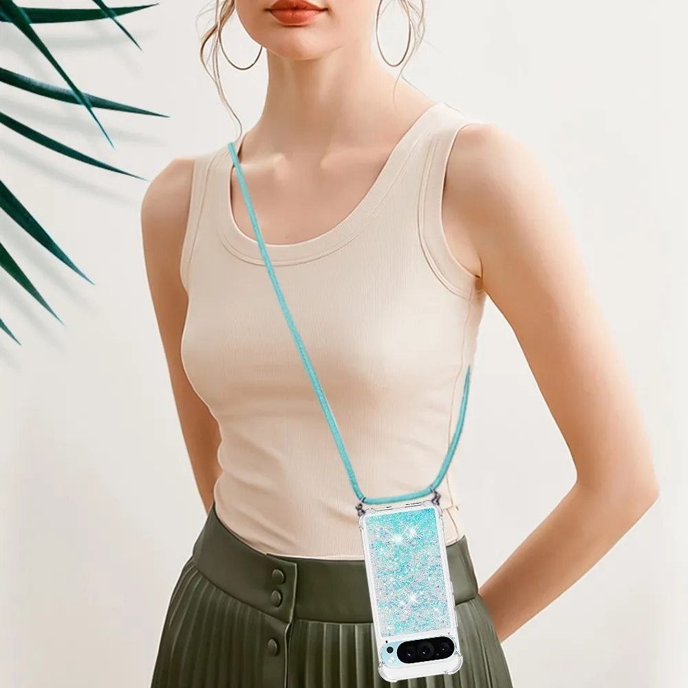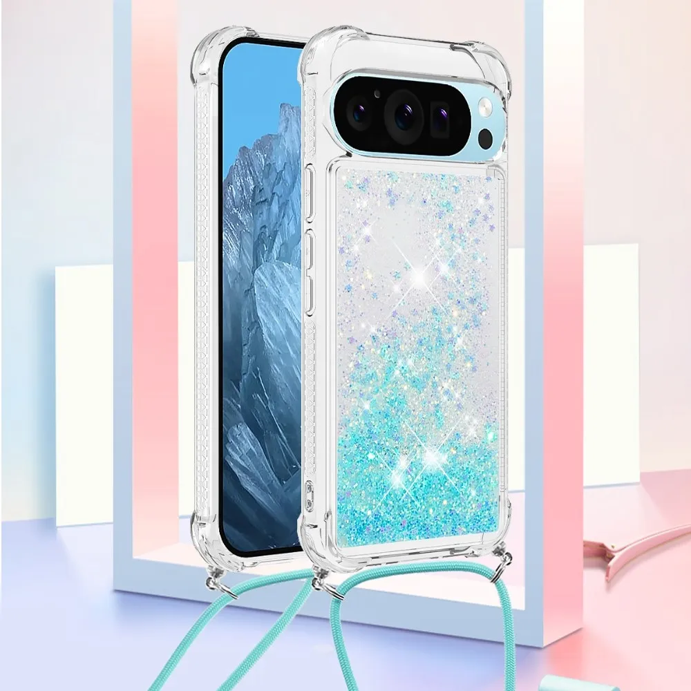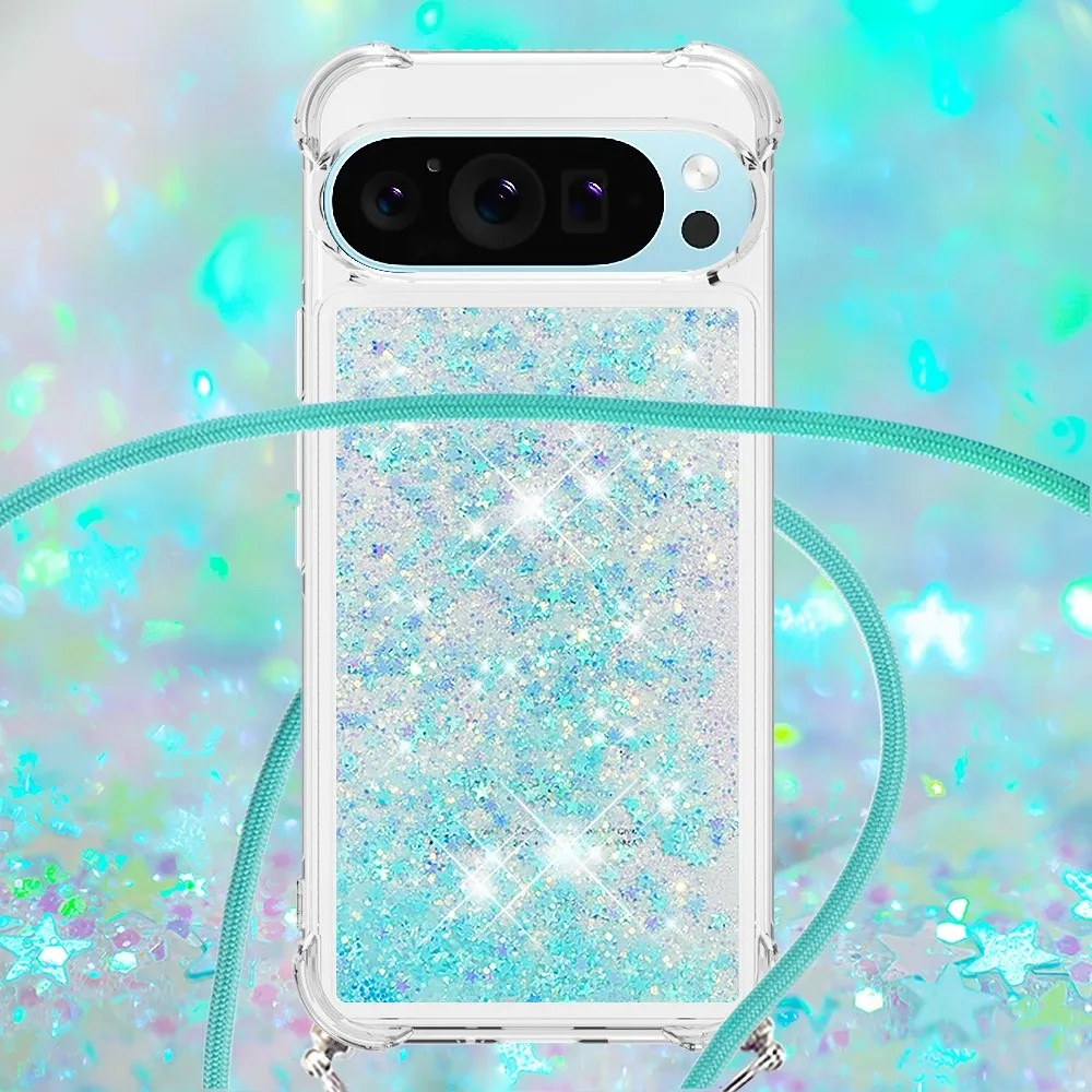 Kék csillagokkal Csillogó homokóra zselés borító zsinórral a Google Pixel 10 Pro/Pixel 10 számára