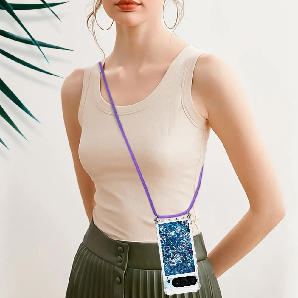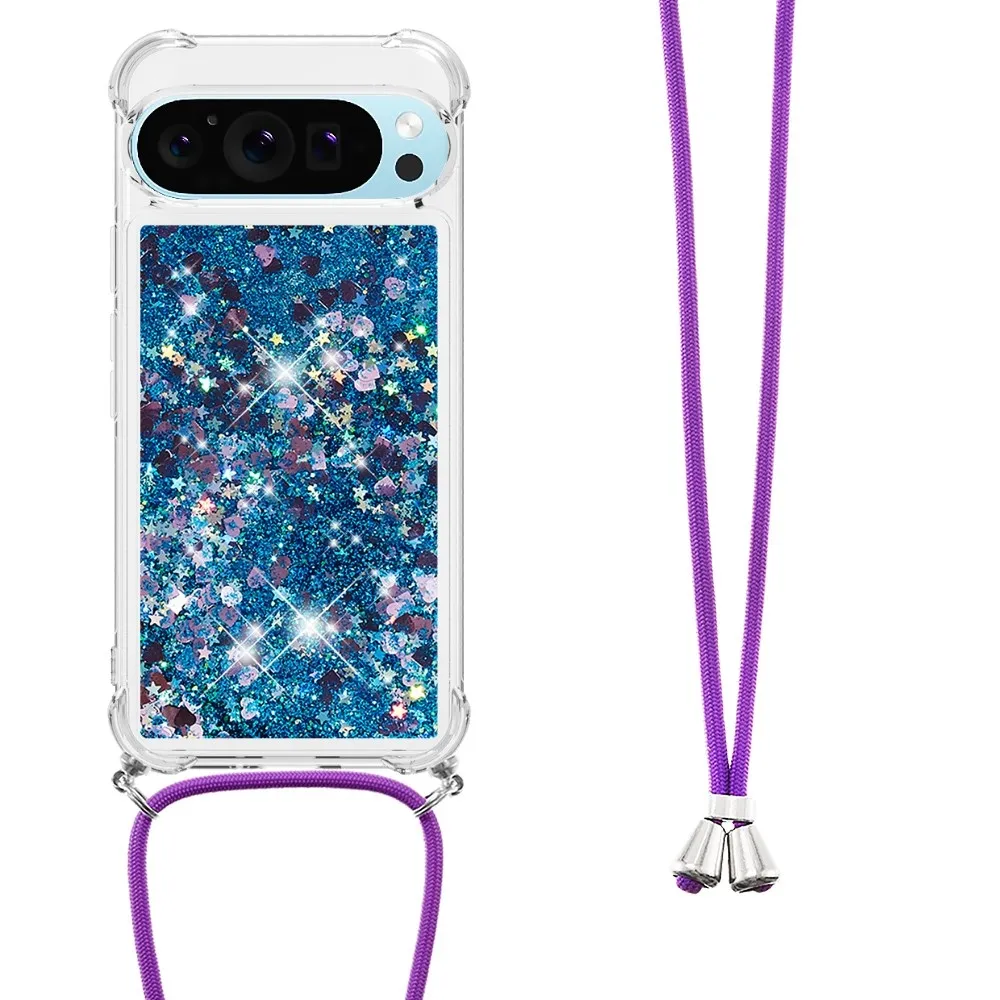 Csillogó homokóra zselés tok zsinórral a Google Pixel 10 Pro/Pixel 10 számára - kék/szív