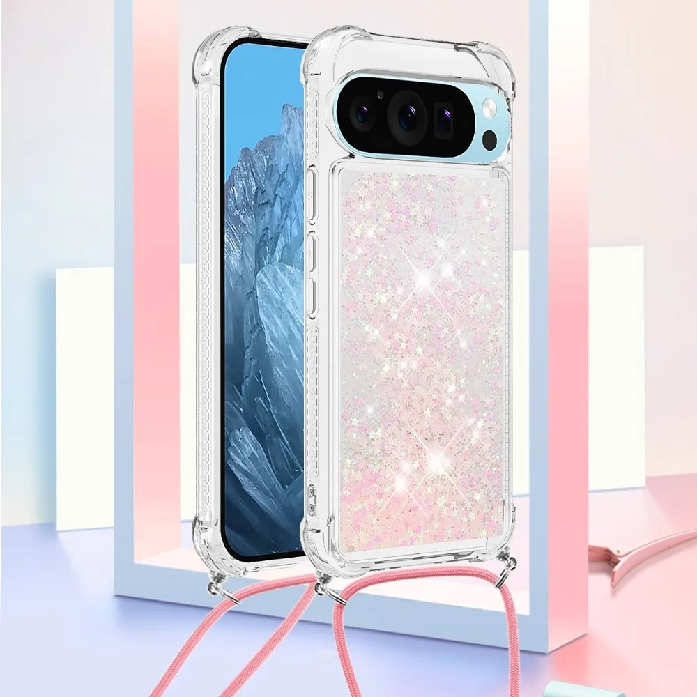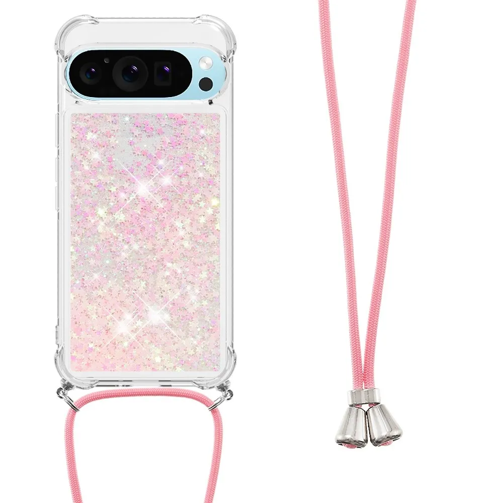 Csillogó homokóra zselés tok zsinórral a Google Pixel 10 Pro/Pixel 10 számára - rózsaszín/csillagok