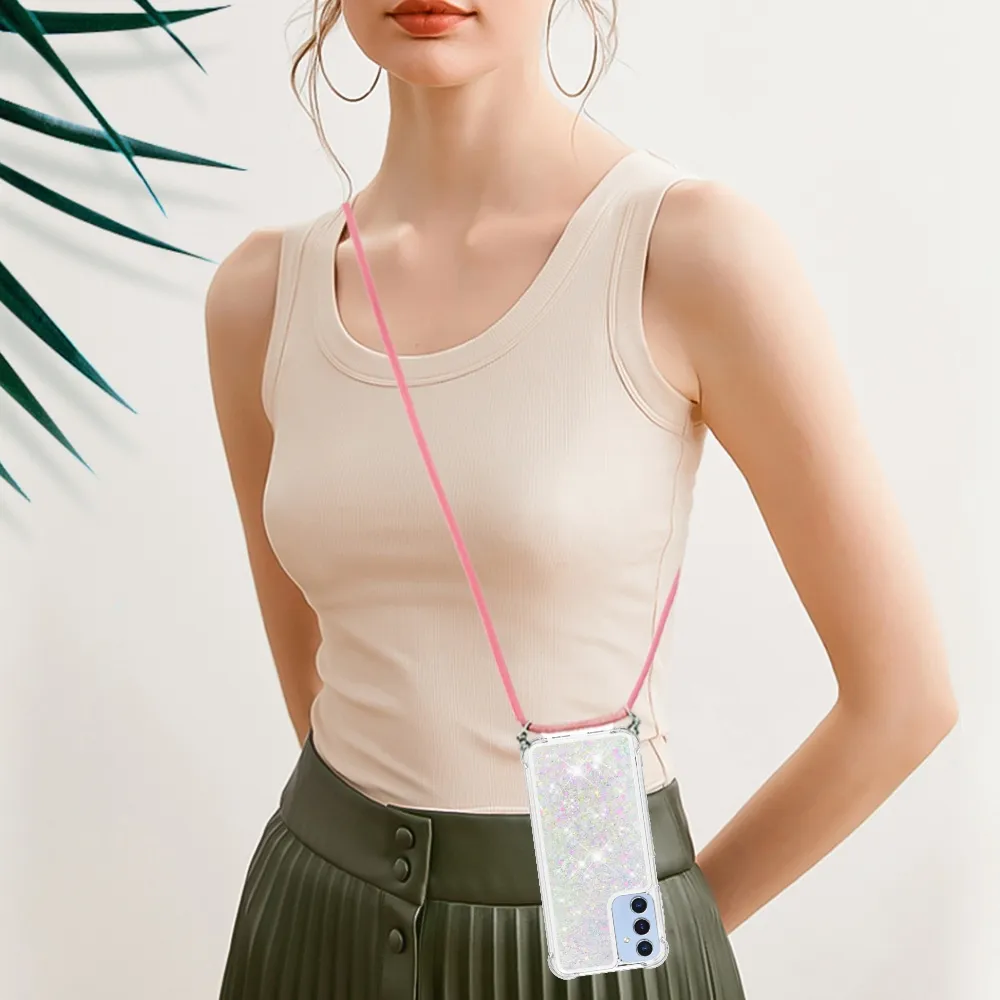 ✅【Fokozott ütésvédelem】A Samsung Galaxy A17 4G/5G csillogós nyakpántos tokját - rózsaszín ezüst szívekkel - körülvevő puha TPU perem kiváló ütésvédelmet és leesésgátlást biztosít, biztosítva, hogy telefonja biztonságban legyen a véletlen ütődésektől. ✅【Homokos, csillogó dizájn】A folyadékban csillogó flitterek szabadon mozognak, és lenyűgöző hatást keltenek, mintha a vízben úszó csillagok lennének, így a telefontok egyszerre szórakoztató és divatos.