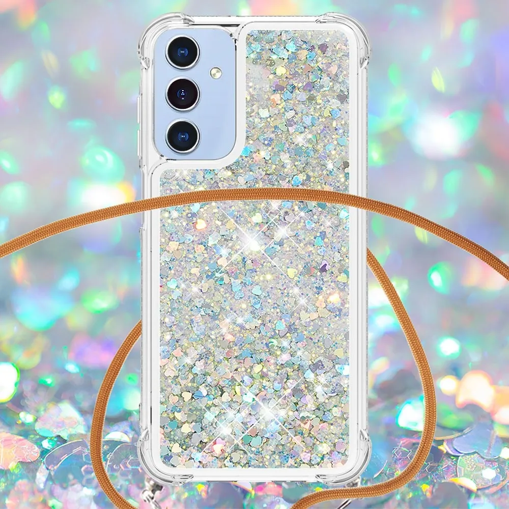 ✅【Fokozott ütésvédelem】A Samsung Galaxy A26 5G csillogós nyakpántos tokját - ezüst szívekkel körülvevő puha TPU perem kiváló ütésvédelmet és leejtésmegelőzést biztosít, biztosítva, hogy telefonja biztonságban legyen a mindennapi ütődésektől.< ✅【Homokos, csillogó dizájn】A folyadékban lévő csillogó flitterek szabadon mozognak, és lenyűgöző hatást keltenek, mint a vízben úszó csillagok, így a telefontok egyszerre szórakoztató és divatos.