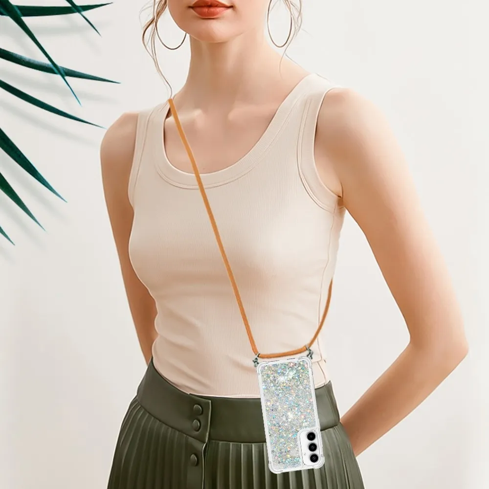 ✅【Fokozott ütésvédelem】A Samsung Galaxy A36 5G csillogós nyakpántos tokját - ezüst szívekkel körülvevő puha TPU perem kiváló ütésvédelmet és leejtésmegelőzést biztosít, biztosítva, hogy telefonja biztonságban legyen a mindennapi ütődésektől.< ✅【Homokos, csillogó dizájn】A folyadékban lévő csillogó flitterek szabadon mozognak, és lenyűgöző hatást keltenek, mint a vízben úszó csillagok, így a telefontok egyszerre szórakoztató és divatos.