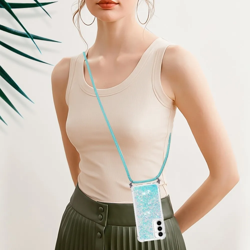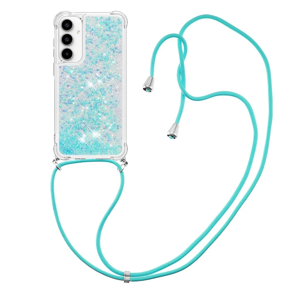 Csillogó homokóra zselés tok zsinórral Samsung Galaxy A36 5G-hez - kék/csillagok