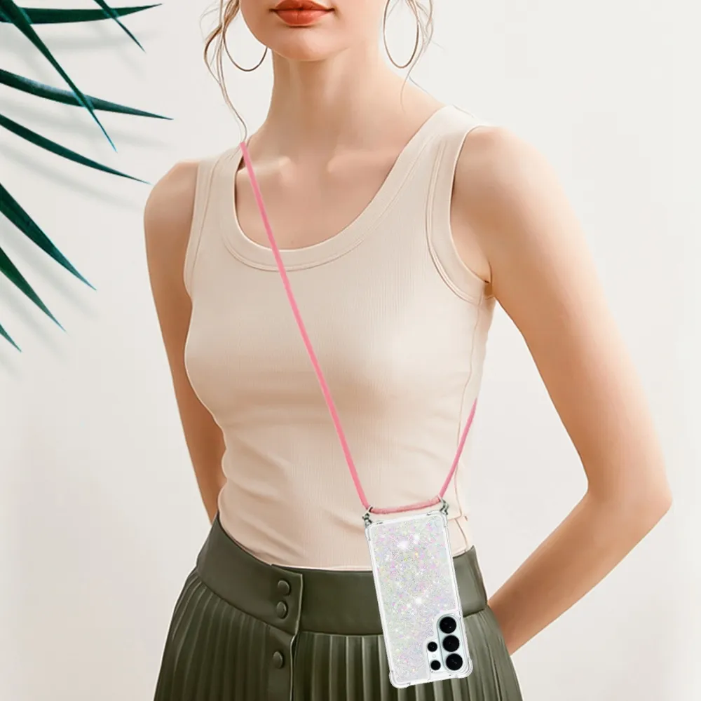 ✅【Fokozott ütésvédelem】A Samsung Galaxy S26 Ultra csillogós nyakpántos tokját - rózsaszín ezüst szívekkel - körülvevő puha TPU perem kiváló ütésvédelmet és leesésgátlást biztosít, biztosítva, hogy telefonja biztonságban legyen a véletlen ütődésektől. ✅【Homokos, csillogó dizájn】A folyadékban csillogó flitterek szabadon mozognak, és lenyűgöző hatást keltenek, mintha a vízben úszó csillagok lennének, így a telefontok egyszerre szórakoztató és divatos.