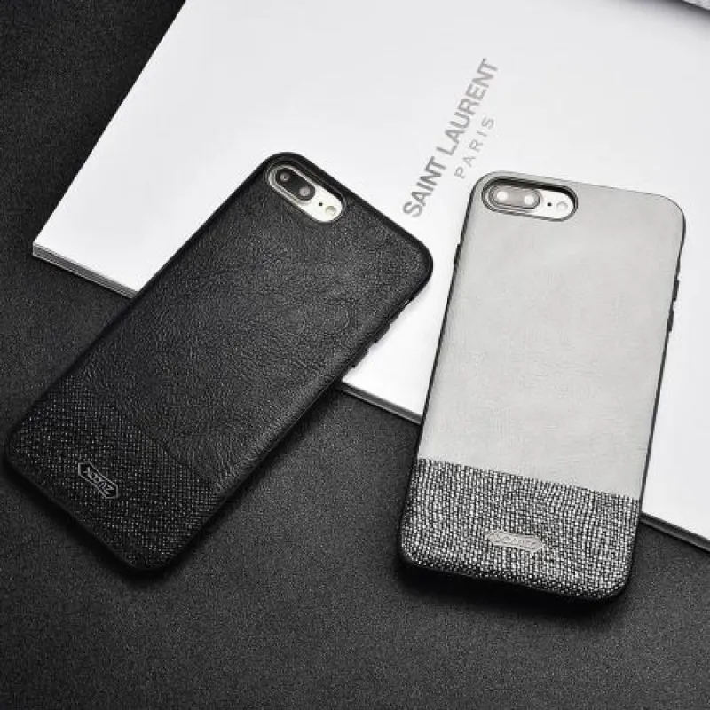 Csillogó zselés tok PU bőr hátlappal iPhone 7 Plus és 8 Plus készülékhez - fekete
