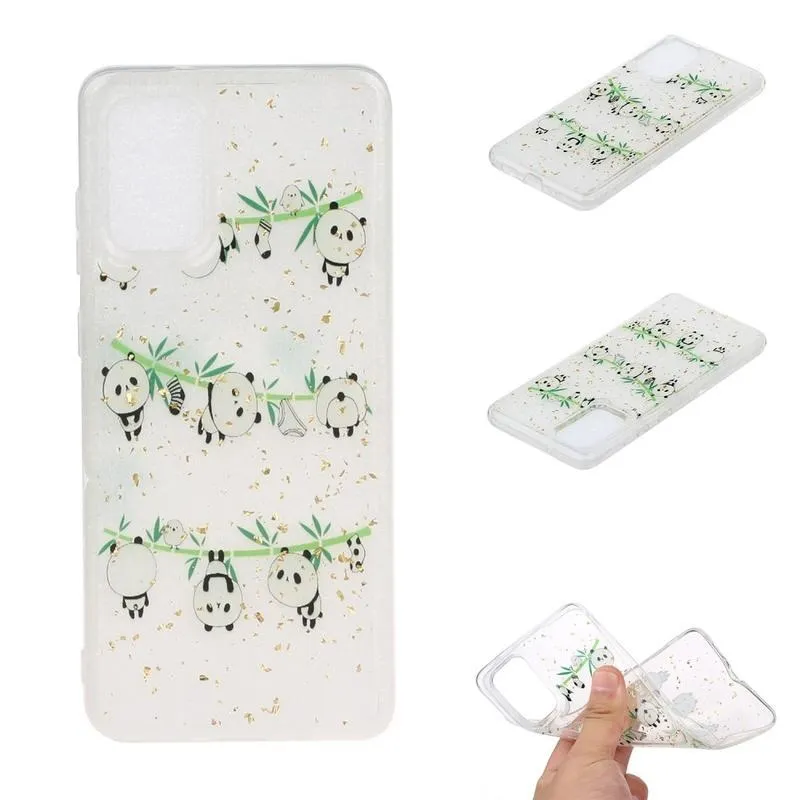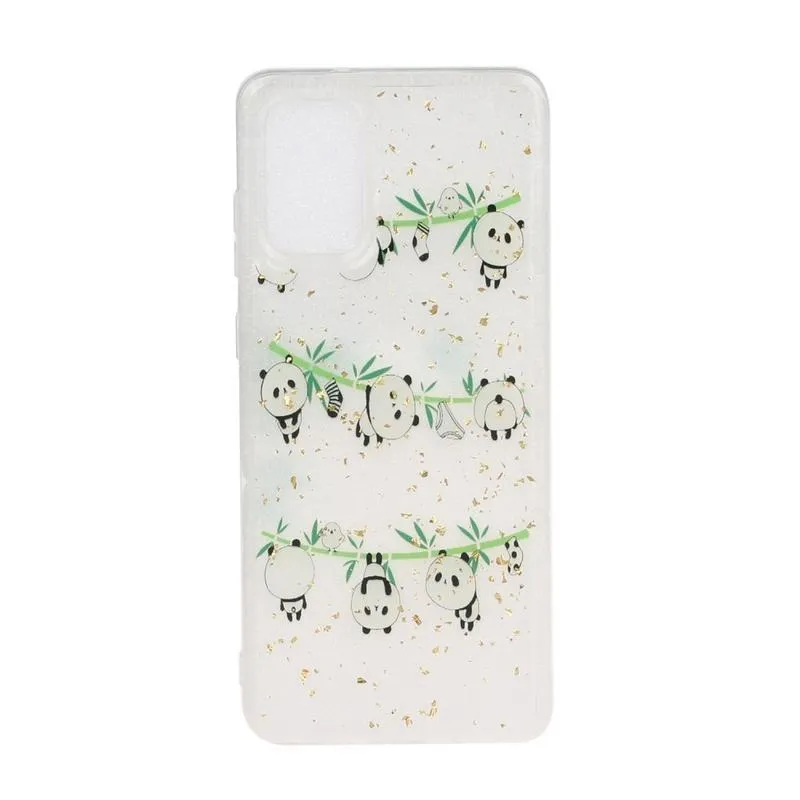 Csillogó zselés tok Samsung Galaxy S20 készülékhez - panda és bambusz