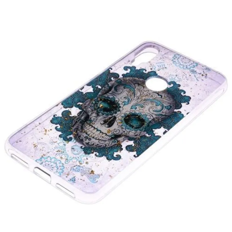 Csillogó szilikon tok Xiaomi Redmi Note 7 készülékhez koponya motívummal