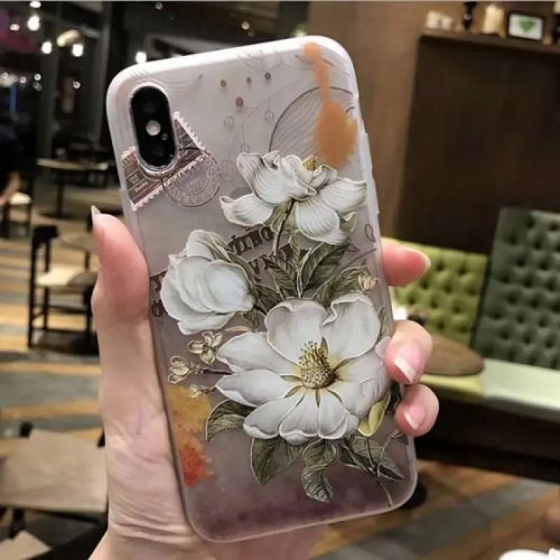 Szilikon tok fehér virágok romantikus motívumával az iPhone X készülékhez