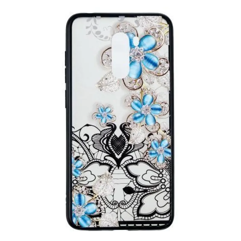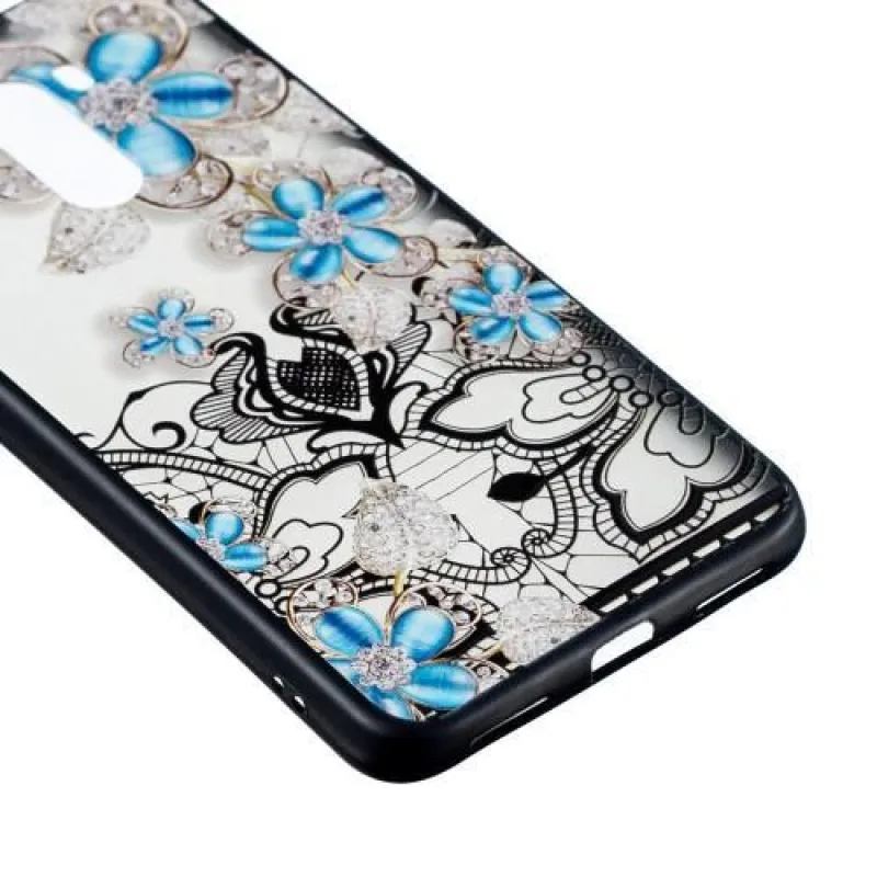 Csipke zselés tok műanyag hátlappal a Xiaomi Pocophone F1-hez - kék virág