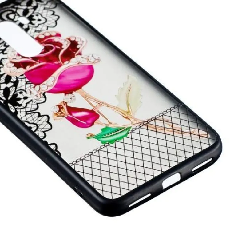 Csipke zselés tok műanyag hátlappal a Xiaomi Pocophone F1-hez - rózsaszínű