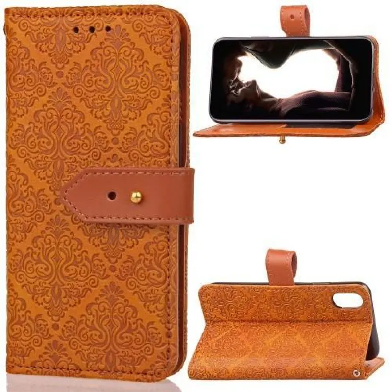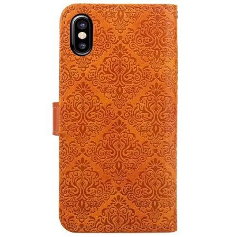 Csipkés PU bőr tok csatos zárral iPhone X készülékhez - narancssárga