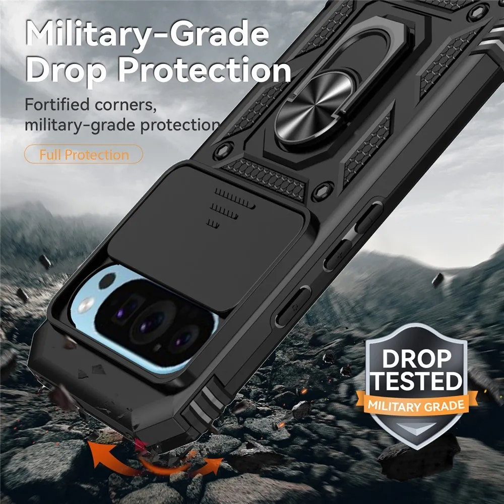 • A fém, kemény műanyag és gél alkatrészek hatékonyan védik a Google Pixel 10 Pro/Pixel 10/9 Pro/9 készülékedet minden oldalról és hátulról.