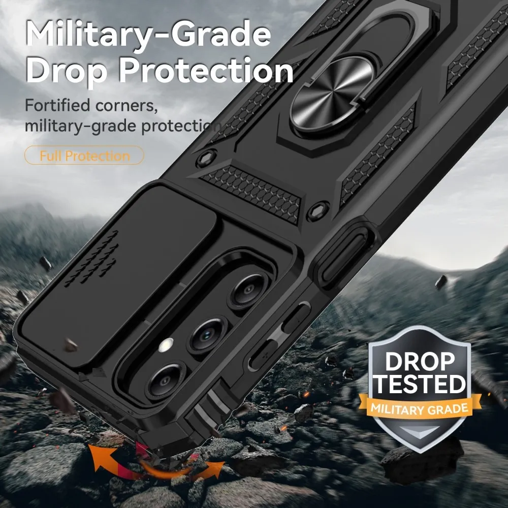 Fekete tartós hibrid tok csúszka Samsung Galaxy A35 5G-hez