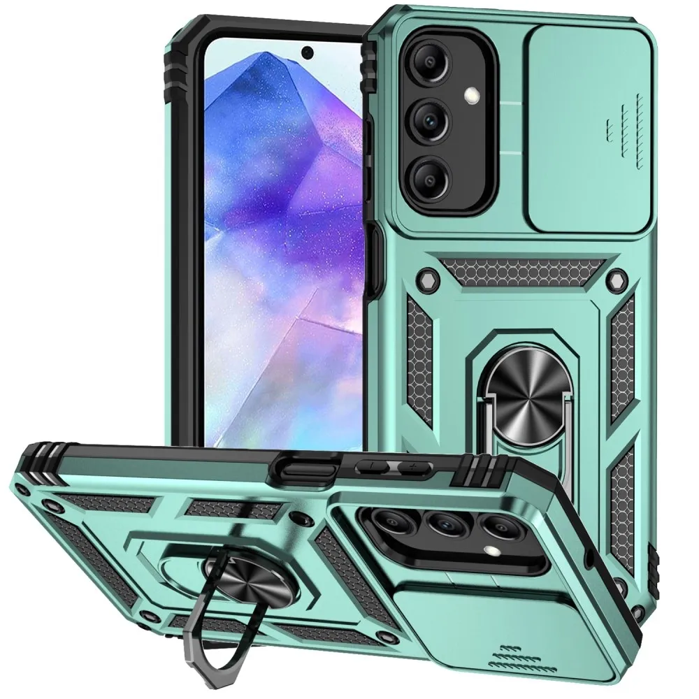 Zöld tartós hibrid tok csúszka Samsung Galaxy A35 5G-hez