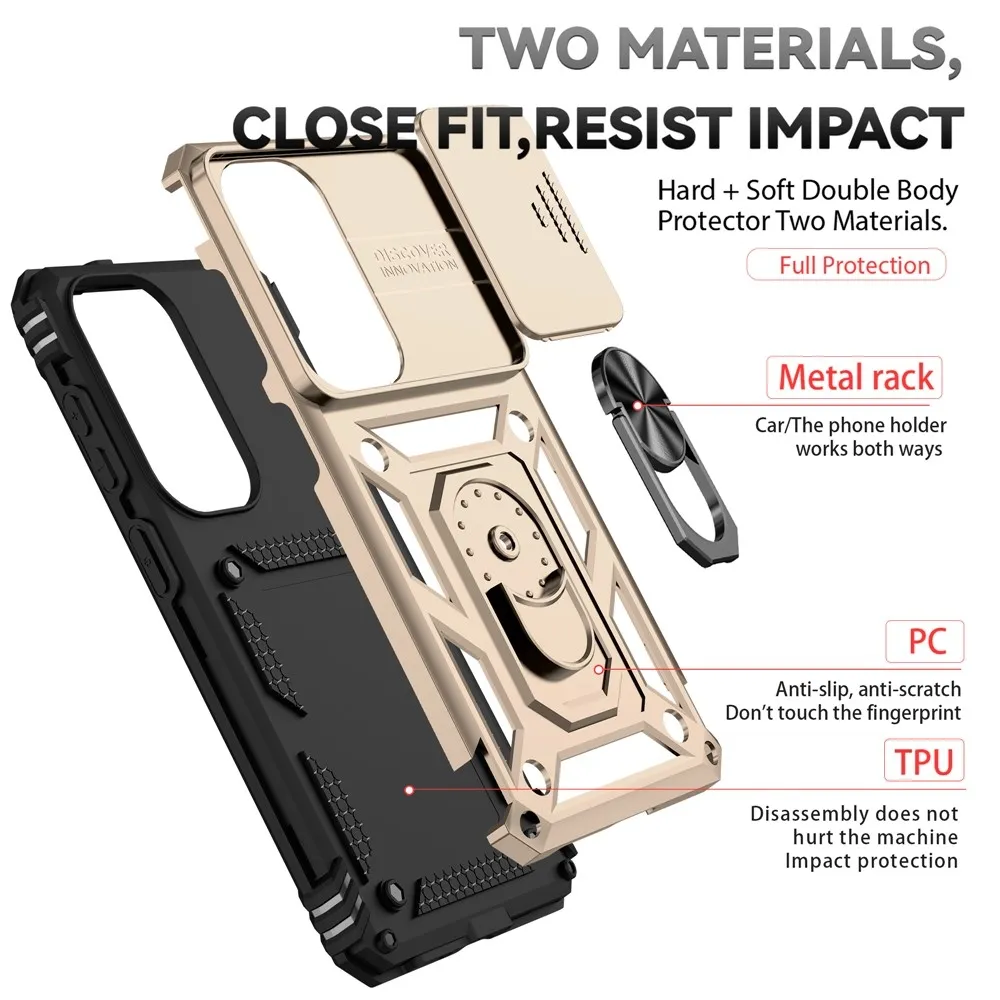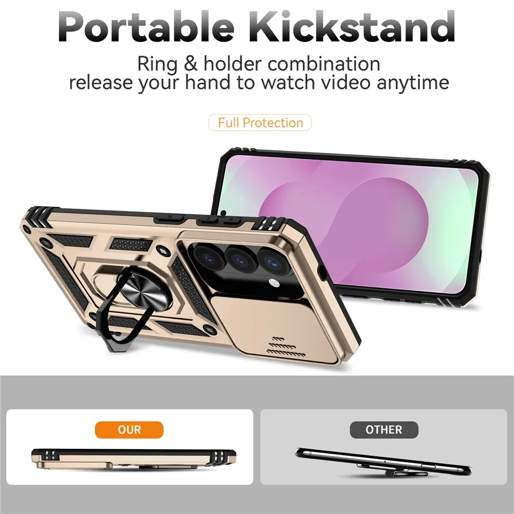 • A fém, kemény műanyag és gél alkatrészek hatékonyan védik a Samsung Galaxy S26 készülékedet minden oldalról és hátulról.
