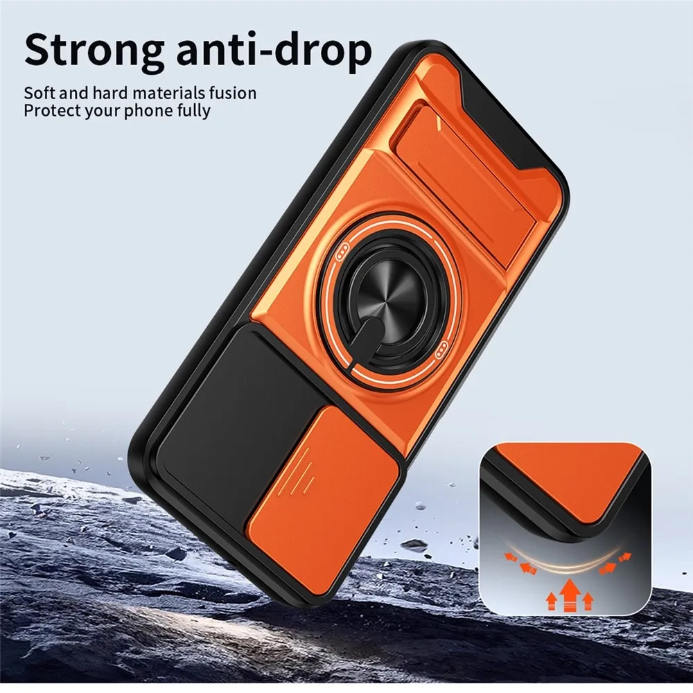 A robusztus konstrukció és az erős vonalak technikai és tartós megjelenést kölcsönöznek ennek a toknak, amely illeszkedik a Samsung Galaxy A37 5G telefon formájához. A narancssárga hátlapot egy integrált forgógyűrű és egy felhajtható állvány egészíti ki a kényelmes fogás és tartalom megtekintése érdekében. A kemény borítás védi a hátlapot, a széleket és a kameramodult a mindennapi használat és az igényesebb helyzetek során. Ez a tok egyike azon tokoknak, amelyek a magas védelmet, a funkcionalitást és a kifejezetten egy adott telefonmodellhez készült egyedi dizájnt ötvözik. ✅【Kétrétegű védelem】Puha TPU és kemény PC anyagok kombinációja a fokozott tartósság, a karcolás-, ütés- és ujjlenyomat-állóság érdekében. ✅【Mágneses kompatibilitás】Beépített erős mágneses gyűrű, amely kompatibilis a mágneses autós tartókkal és más mágneses kiegészítőkkel a kényelmes rögzítés érdekében. ✅【Gyűrűtartó és összecsukható állvány】Beépített, 360°-ban forgatható gyűrűtartóval van felszerelve a könnyű egykezes használat érdekében. A beépített összecsukható állvány lehetővé teszi a könnyű váltást a vízszintes és függőleges módok között, ideális a kéz nélküli használathoz. ✅【Precíz kivágások és fokozott védelem】A precíz kivágások könnyű hozzáférést biztosítanak az összes funkcióhoz, porthoz és gombhoz. A megemelt képernyő- és kamerakeretek jobban védik a telefont a véletlen sérülésektől. ✅【Csúszó lencsevédő】Csúszó lencsevédővel tervezték, amely fokozott védelmet nyújt a kamera lencséinek, és megakadályozza a karcolásokat és sérüléseket.