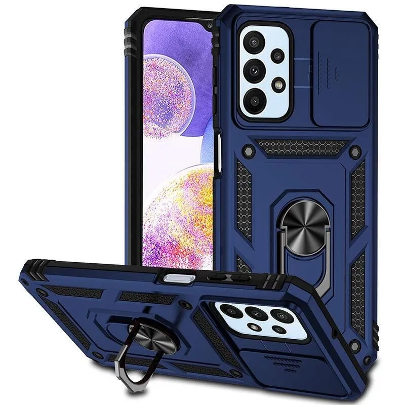 Csúsztatható, tartós hibrid borítás ujjbeggyel a Samsung Galaxy A23 4G/5G készülékre - kék