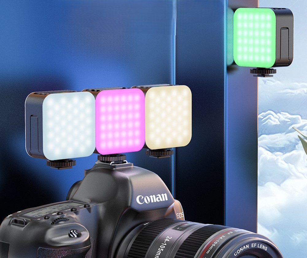 D02 mini RGB LED derítőfény mágnessel és állítható színhőmérséklettel erős és kompakt megoldás videók készítéséhez, fotózáshoz és livestreamhez. A mágneses rögzítésnek köszönhetően könnyen a telefonhoz vagy fém felületekhez rögzíthető, így bárhol kiváló megvilágítást biztosít.