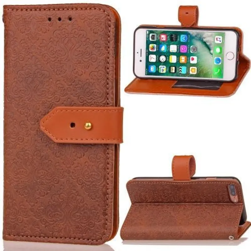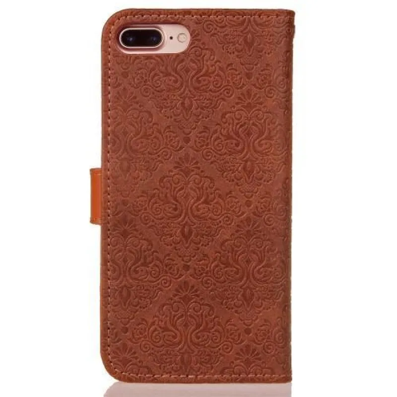Damaszk PU bőr tok iPhone 8 Plus és 7 Plus készülékhez - barna