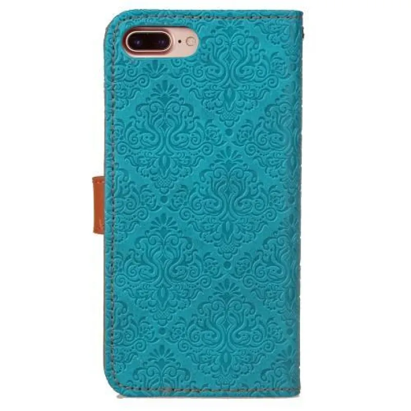 Damaszk PU bőr tok iPhone 8 Plus és 7 Plus készülékhez - kék