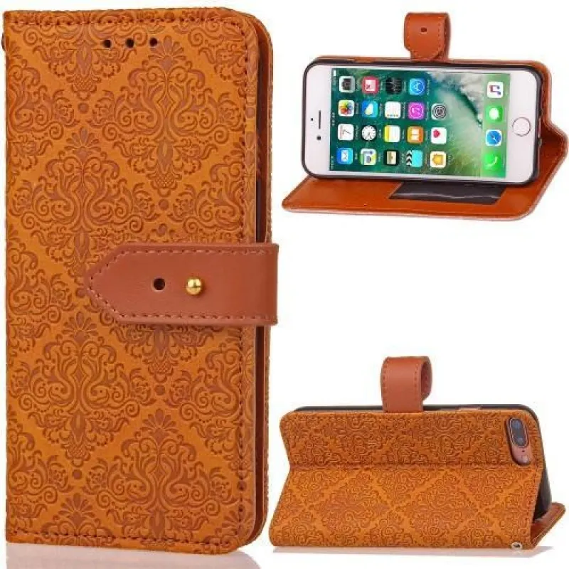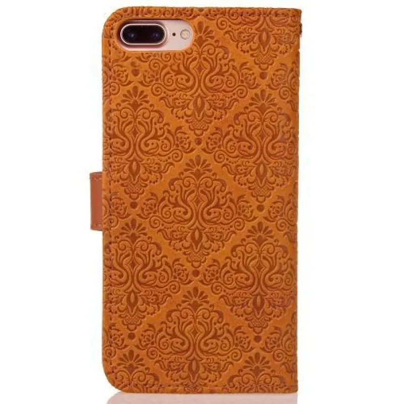 Damaszk PU bőr tok iPhone 8 Plus és 7 Plus készülékhez - narancssárga színben