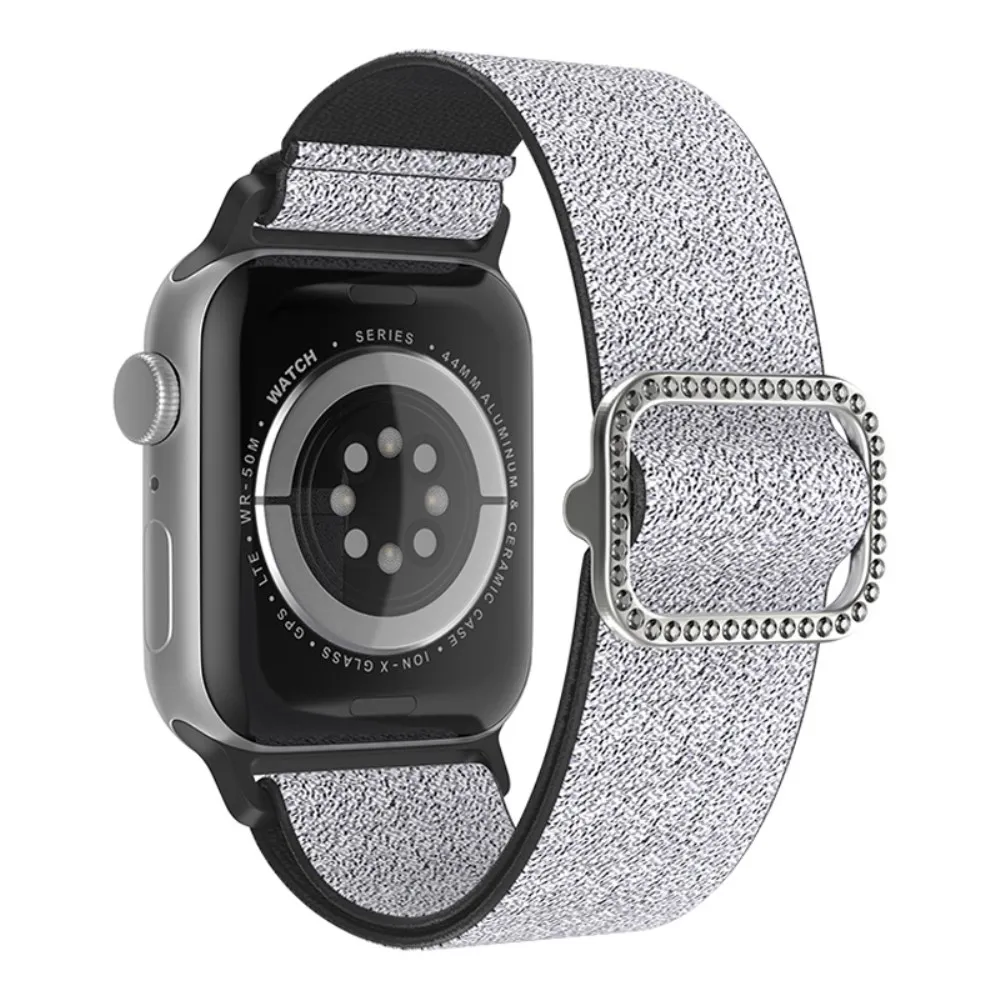 Dekor nejlon szíj Apple Watch Ultra/Ultra 2 49mm/SE/SE 2022/2023 44mm/9/8/7 45mm/6/5/4 44mm/3/2/1 42 mm-es Apple Watch Ultra/Ultra 2 órához - ezüst/fekete színben