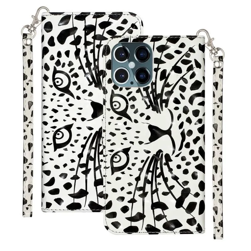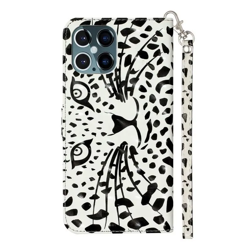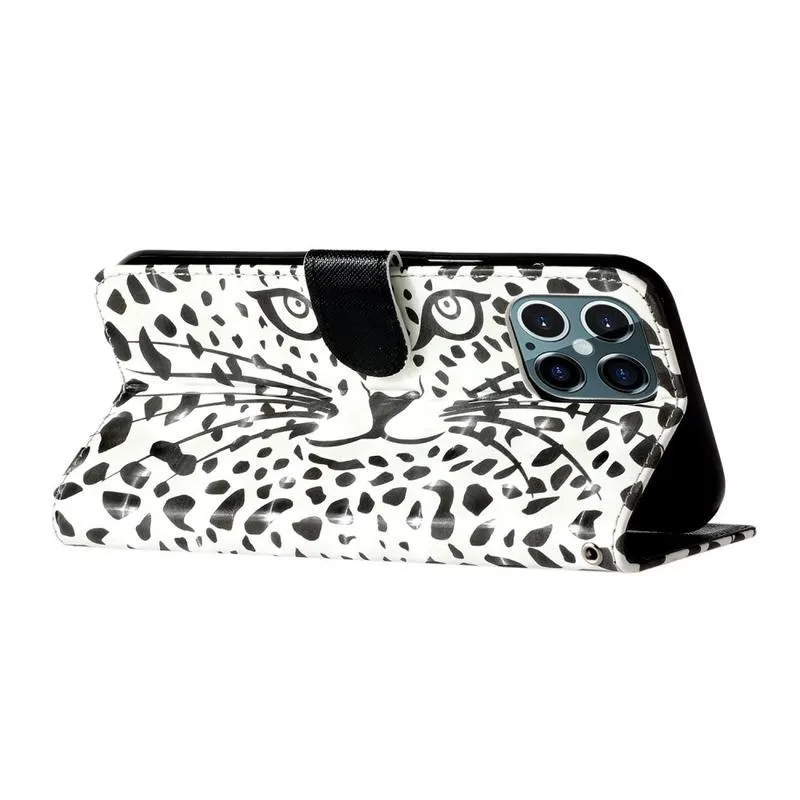 Dekor PU bőr pénztárca tok iPhone 12 Pro/12 készülékhez - leopárdos arccal